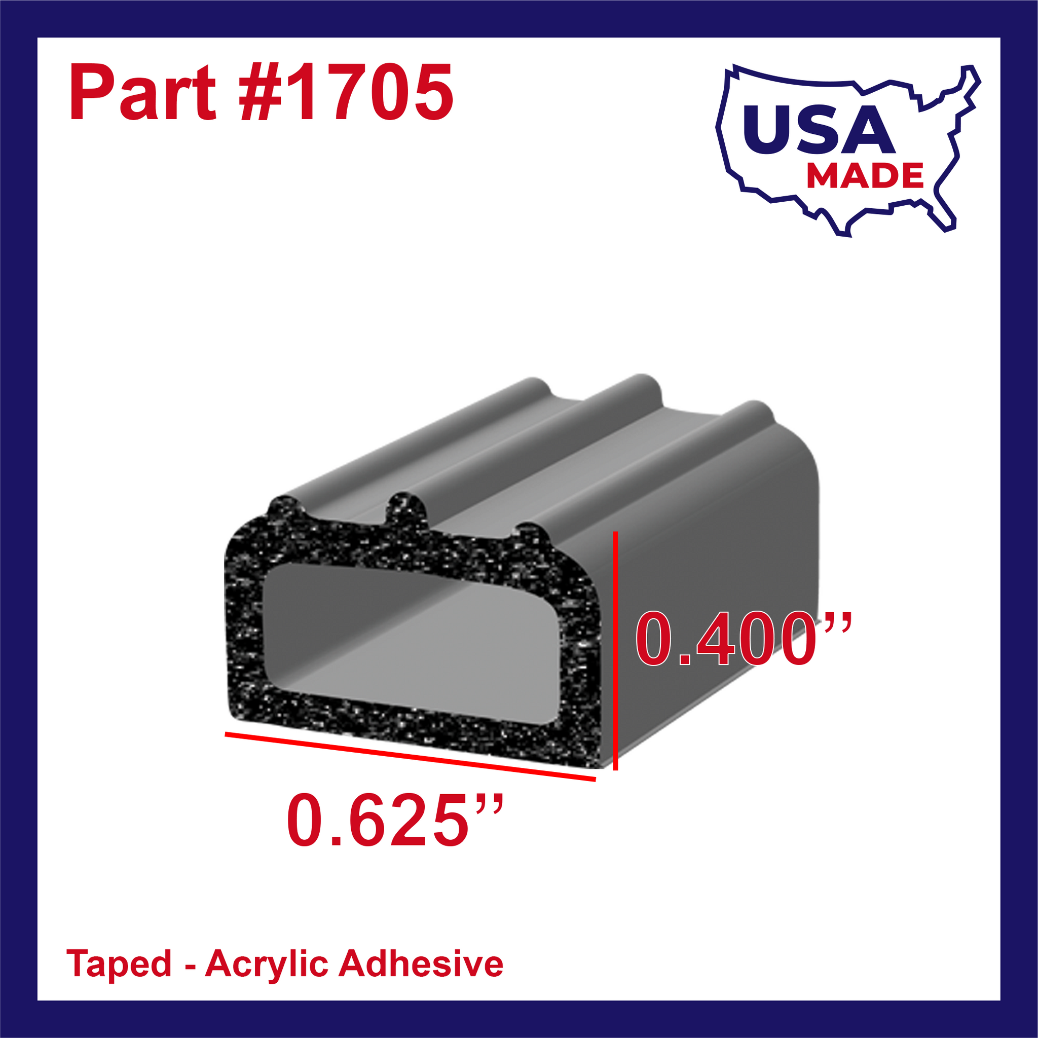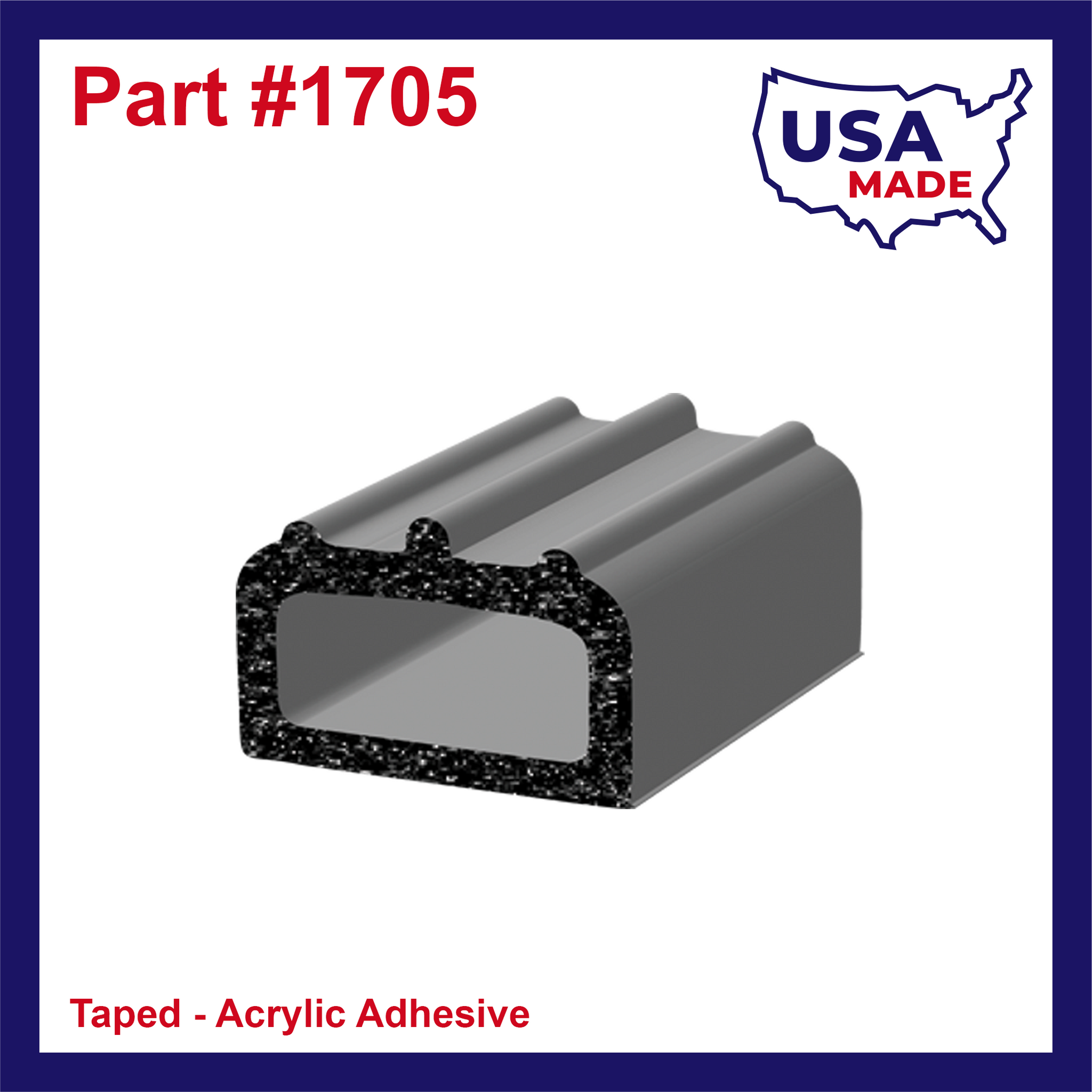 Seal number 1705H2 is made from EPDM (ethylene-propylene diene monomer) and is ideal for use in entry door seal, hatch seal, and cargo door seal applications. Available in 15', 25', and 50' lengths. Reach out using the form on the home page if interested in larger quantities.