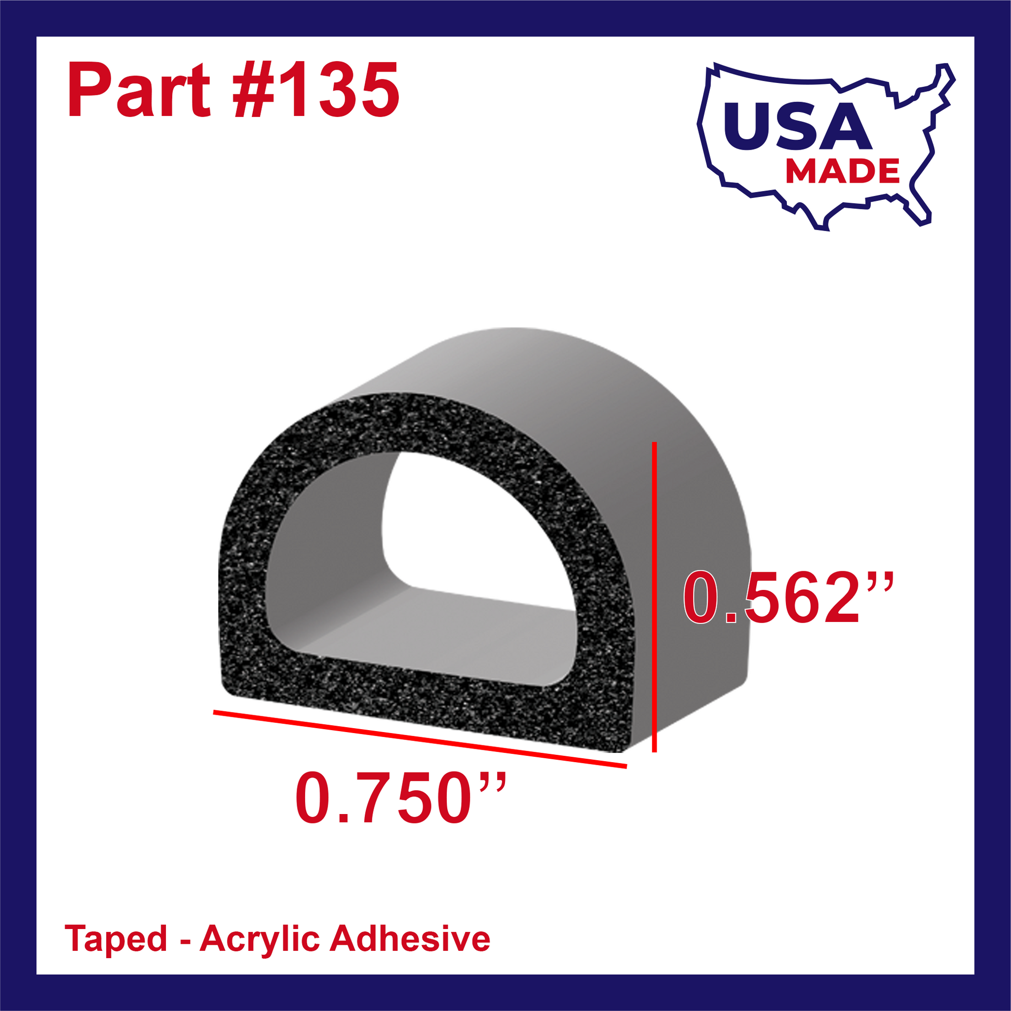 Seal number 135H2 is made from EPDM (ethylene-propylene diene monomer) and is ideal for use in door seal, hatch seal, and cargo door seal applications. Available in 15', 25', and 50' lengths. Reach out using the form on the home page if interested in larger quantities.