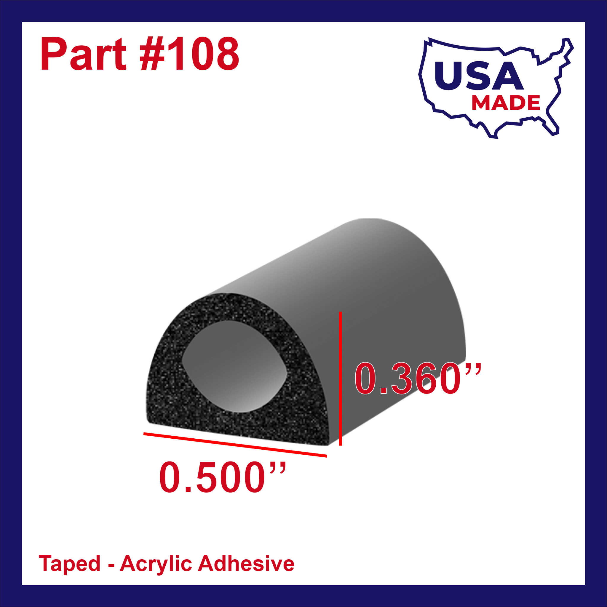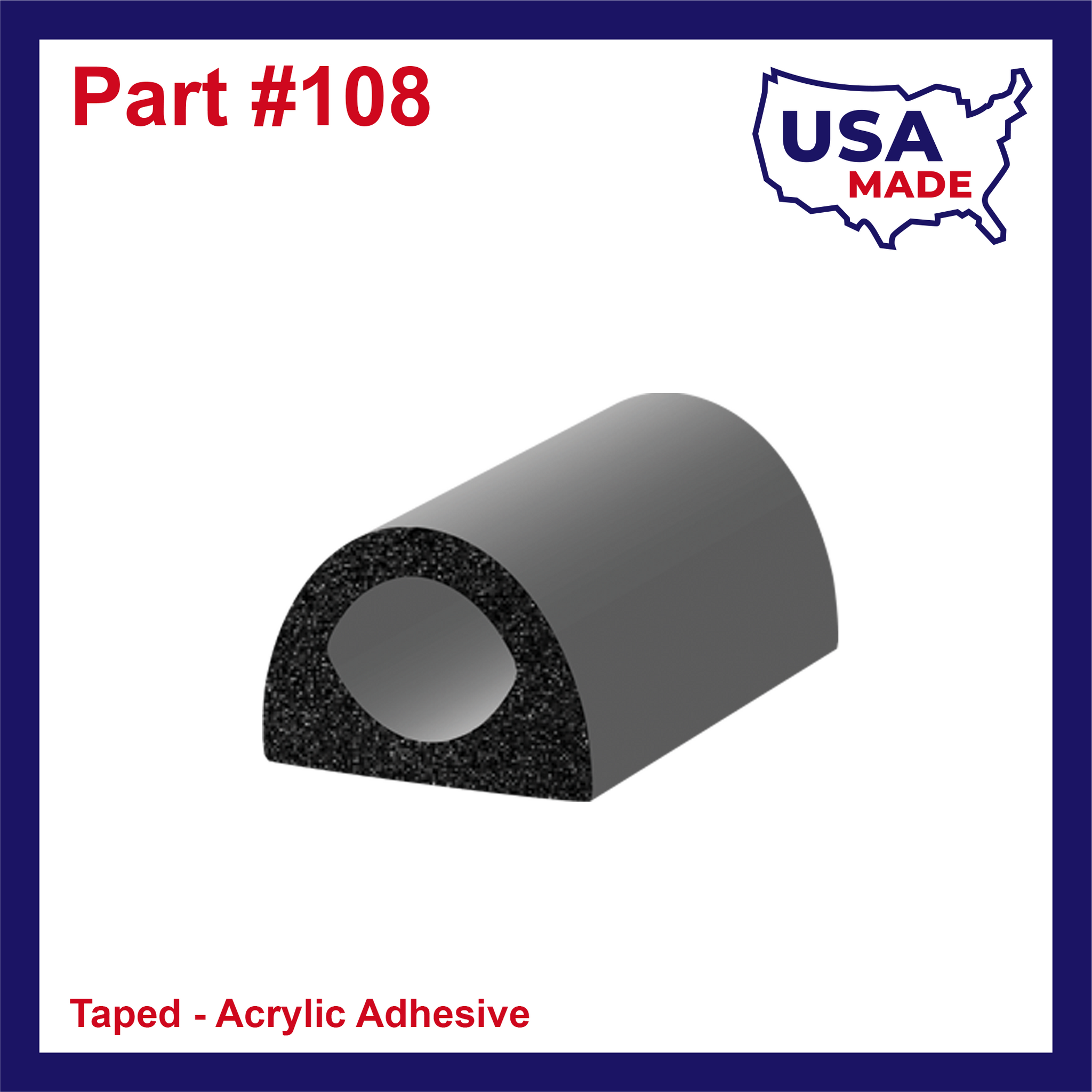 Seal number 108H2 is made from EPDM (ethylene-propylene diene monomer) and is ideal for use in window seal, cargo door seal, door seal, and hatch seal applications. Available in 15', 25', and 50' lengths. Reach out using the form on the home page if interested in larger quantities.
